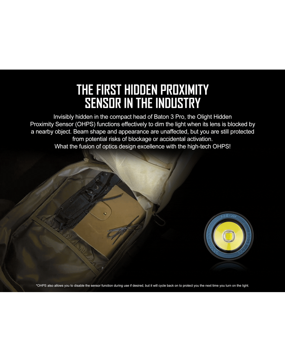 Скрит сензор за близост: Проектиран да увеличава светлинния поток на фенерчето по време на ежедневна употреба, като същевременно автоматично намалява яркоста, когато сензорът открие препятствие наблизо.