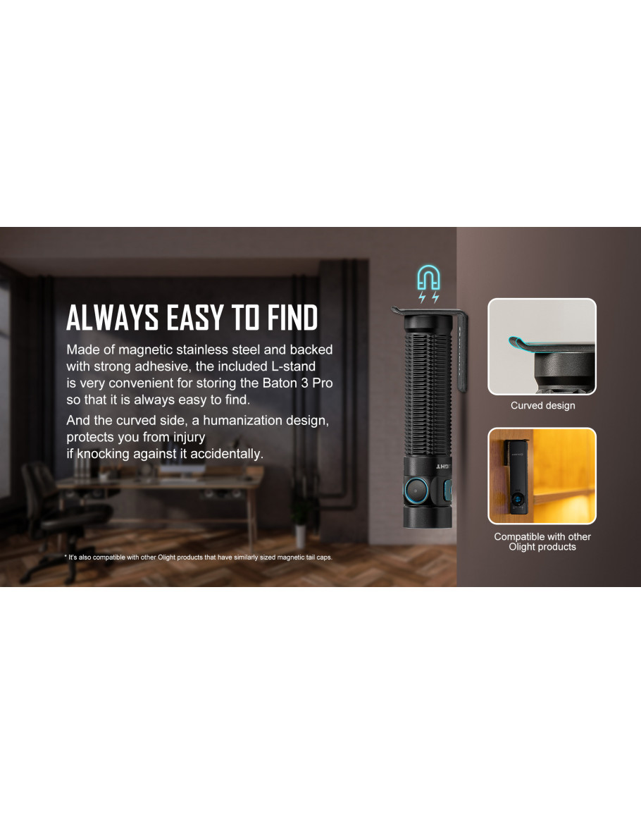 Удобен за съхранение: Включената L-образна стойка, която може да се залепи навсякъде, улеснява съхранението на фенерчето след употреба.